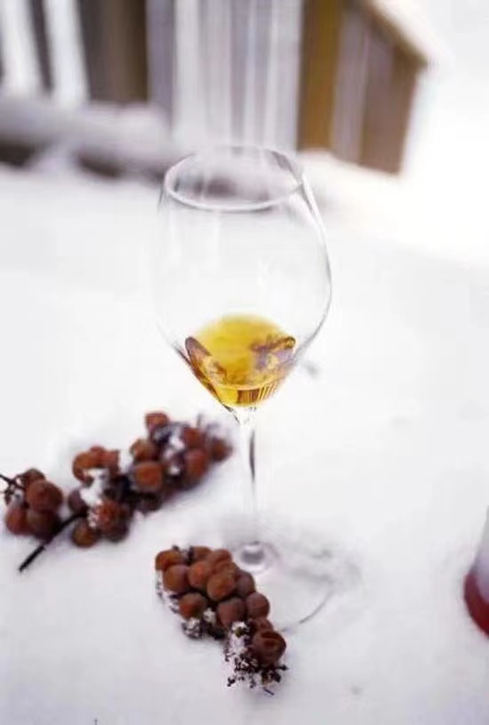 冰酒和贵腐酒的出现故事有点类似,都是因为耽误了收货时间导致葡萄出现问题没办法只得吧有问题的葡萄拿来酿造最终却获得了意外的美味,但和贵腐不同的是,冰酒不是由霉菌发酵后产生的,而是如名字所说,是被冰冻的葡萄酿造而成,传说冰酒最开始出现是在德国,酿造方法是用被冰冻住的葡萄直接压榨,按照传统方法酿造,这样酿造出来的酒反而比普通的酒甜度更高,带着其独特的风味。